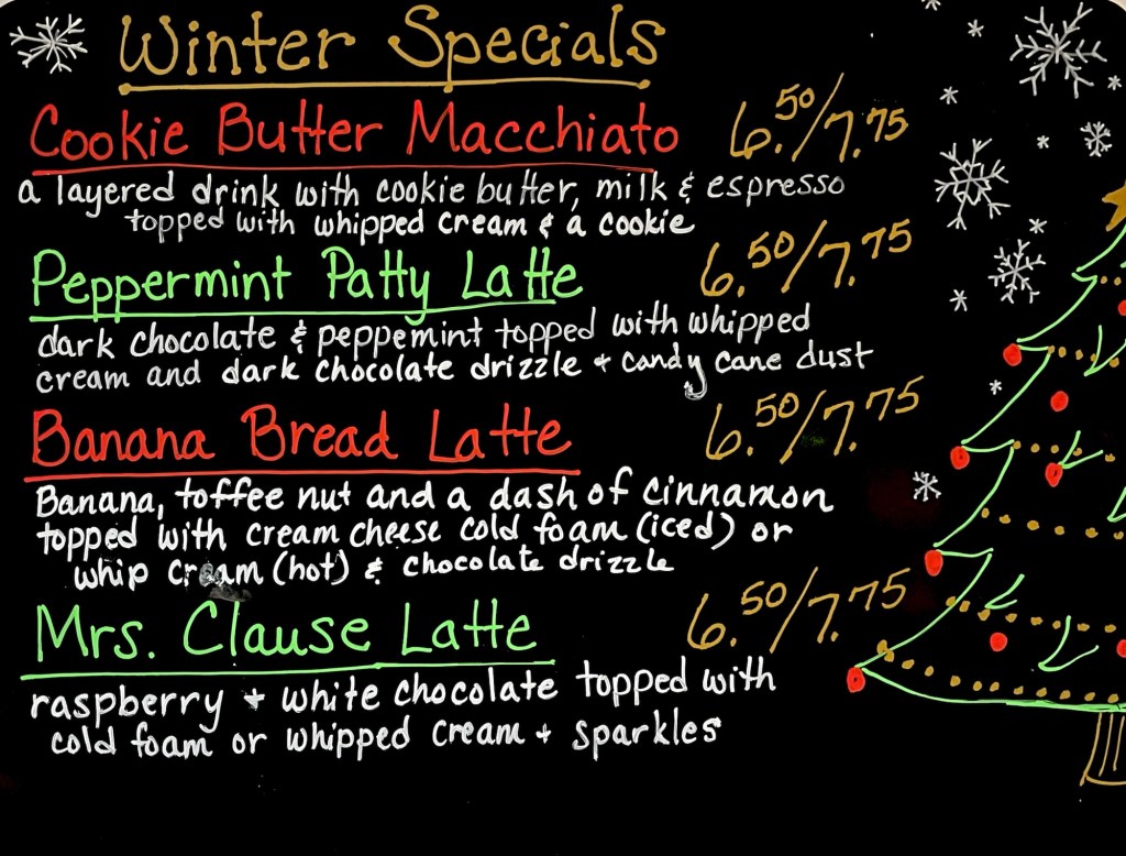 Our specials can be made iced or hot. We replace the cold foam for iced drinks with whip cream if you prefer your drink hot